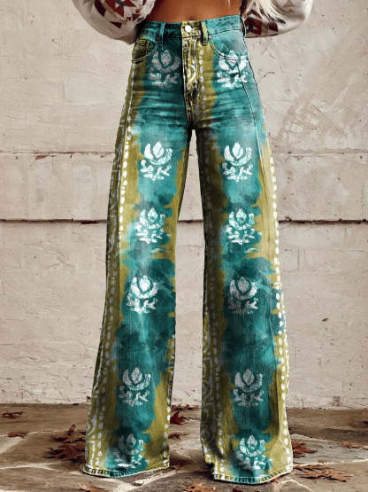 Women's Vintage Print Casual Wide Leg Pants