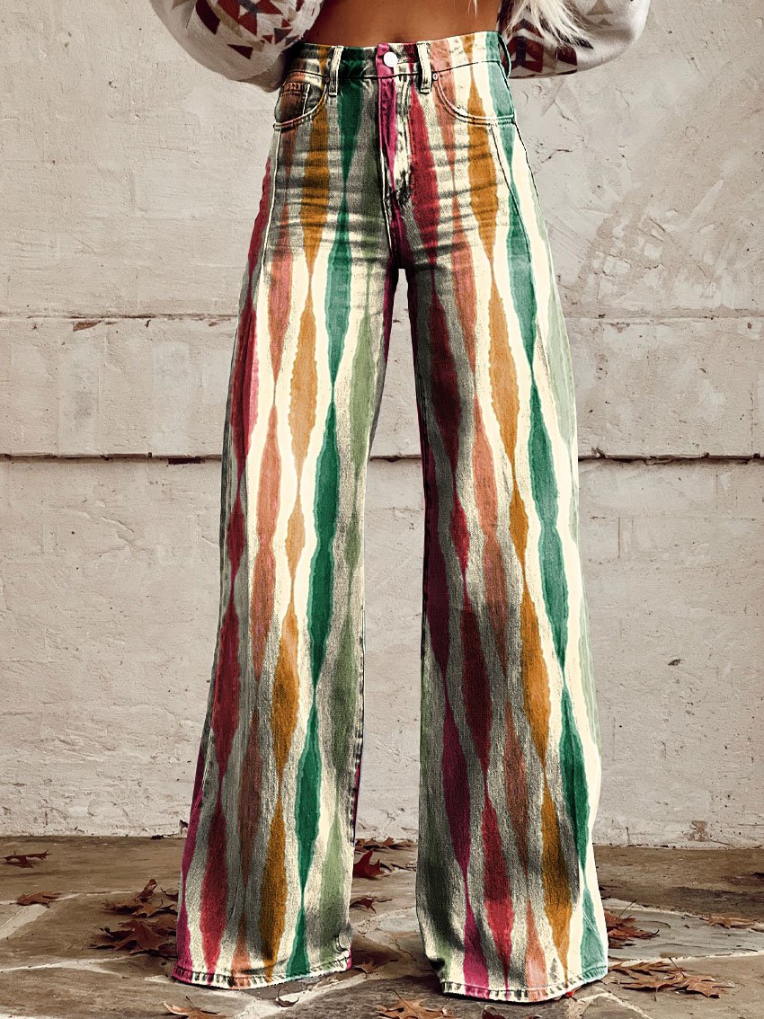 Women's Vintage Print Casual Wide Leg Pants