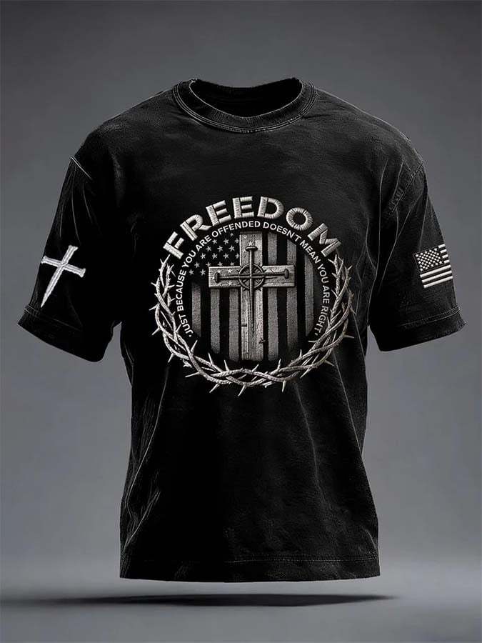 Men's Freedom Independence Day Crossed Print Cotton Casual T-Shirt – lolonb
