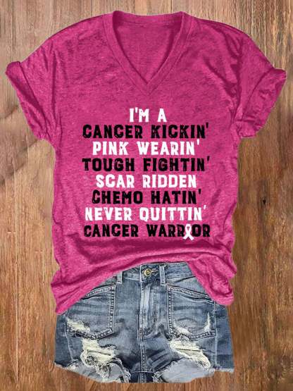 Last Day 49% OffV-neck I'm A Cancer Kickin' Pink Wearin' Tough Fightin' Scar Ridden Chemo Hatin' Never Ouittin' Cancer Warrior T-Shirt – lolonb