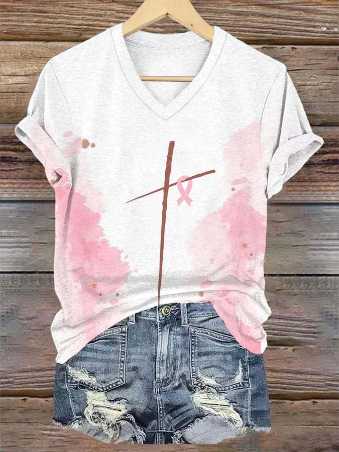Women's Breast Cancer Faith Print Casual T-Shirt