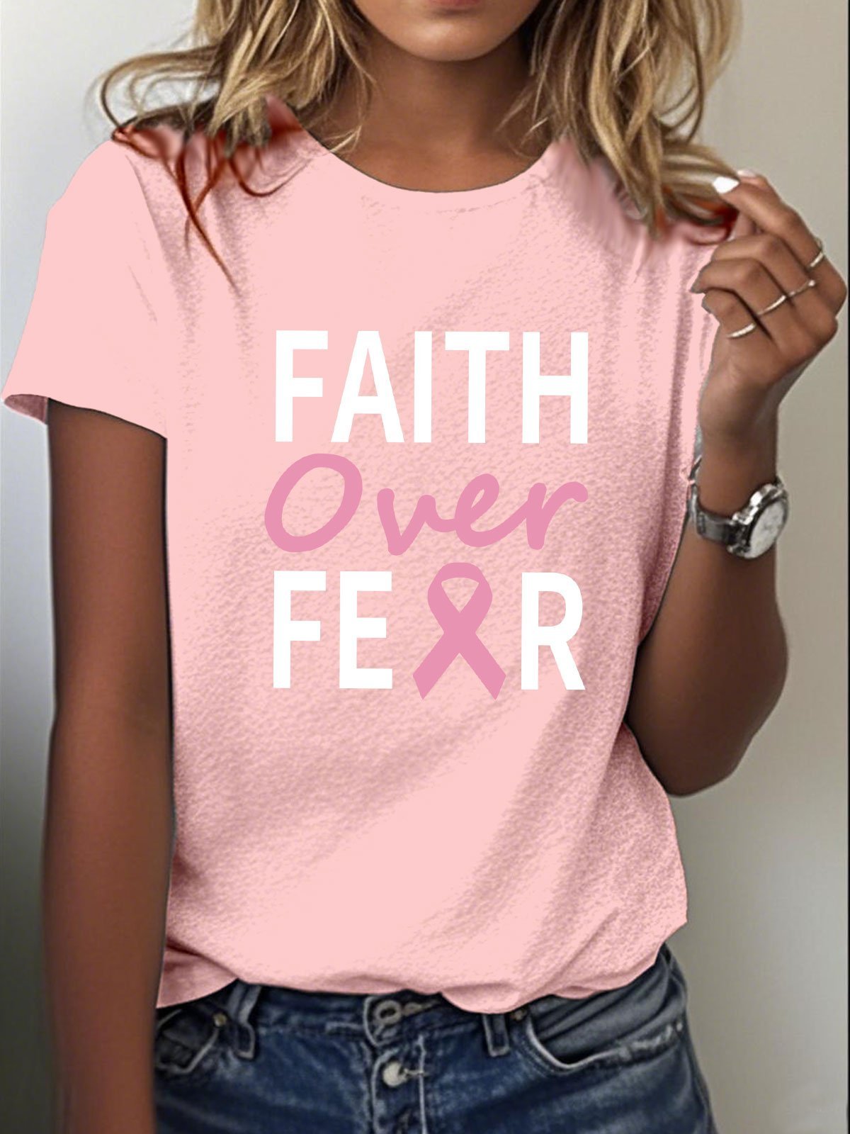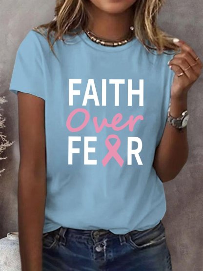 Women's Breast Cancer Gradient Print Short Sleeve T-shirt