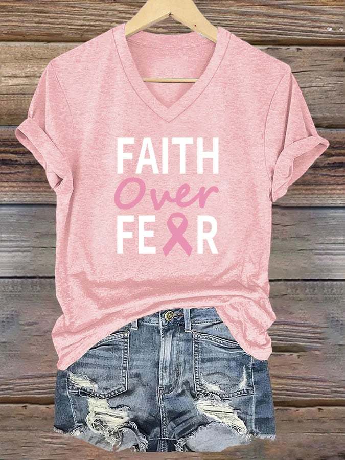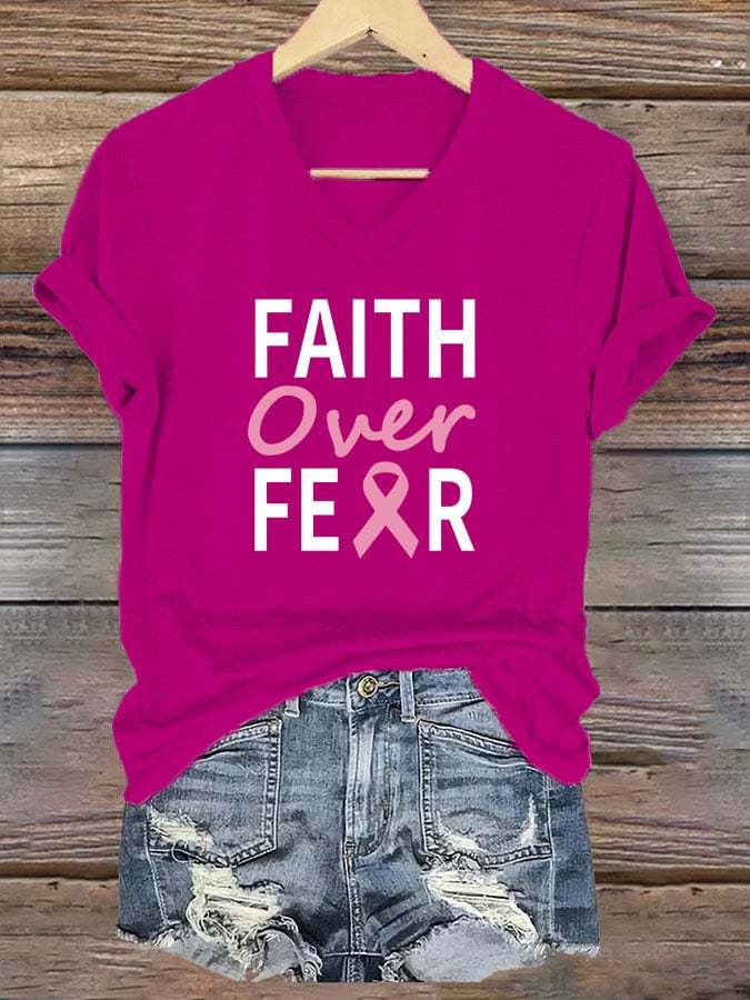 Women's Breast Cancer Printed Short Sleeve T-shirt