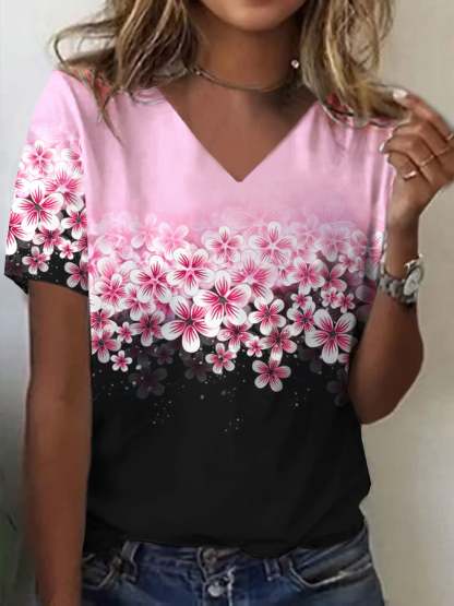 Last Day 49% OffWomen's Pink Floral Casual Print T-Shirt – lolonb