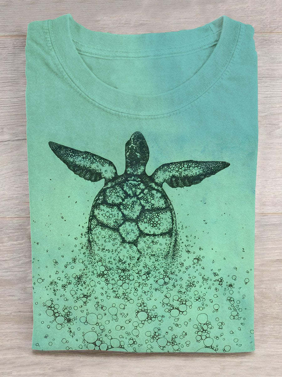 Funny Sea Turtle Art Print Casual T-shirt