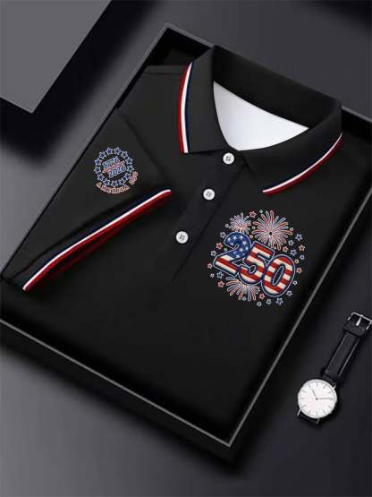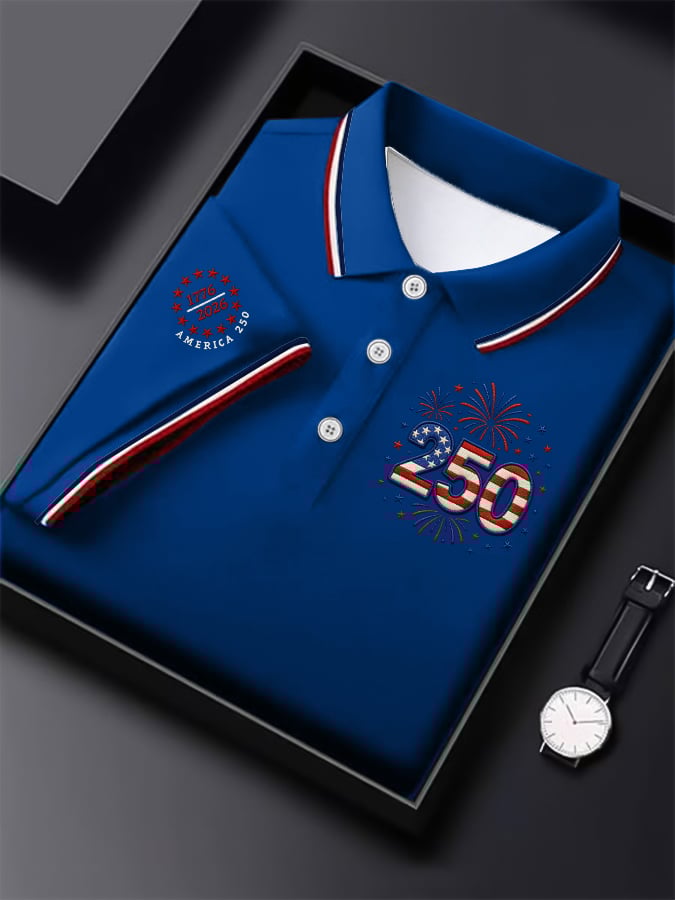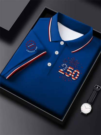 Men's Retro American 250th Anniversary Print Golf Polo Shirt – lolonb