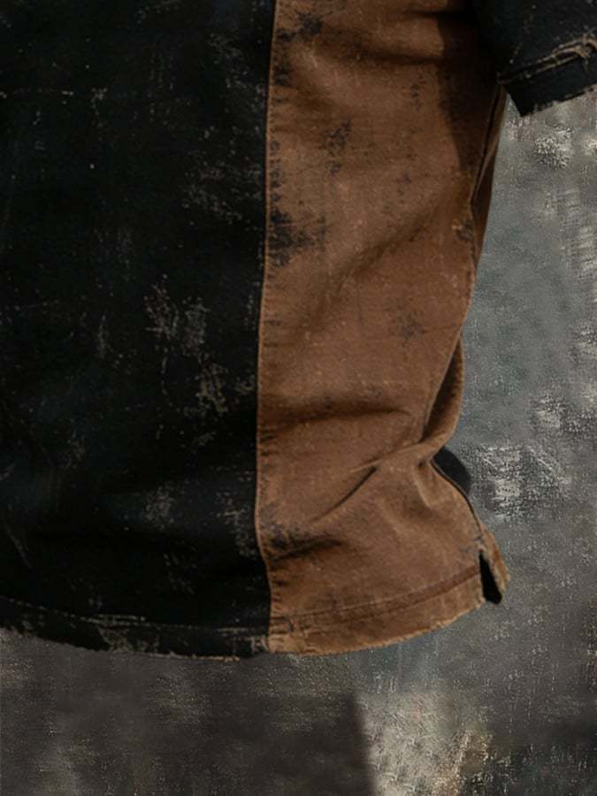 Men's Retro Color Block Pure Cotton Washed Patriot Polo Shirt
