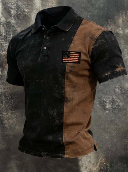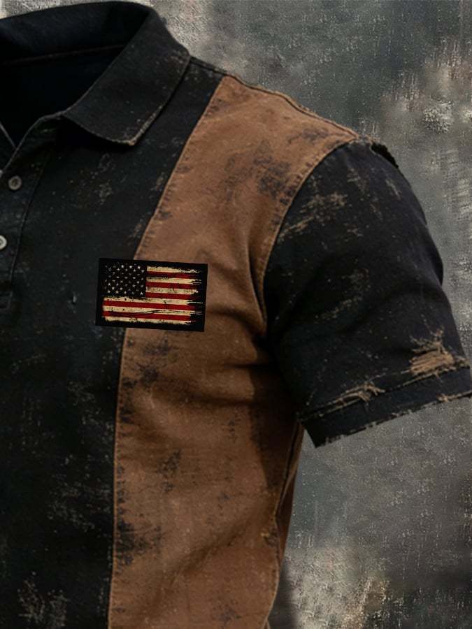 Men's Retro Color Block Pure Cotton Washed Patriot Polo Shirt – lolonb