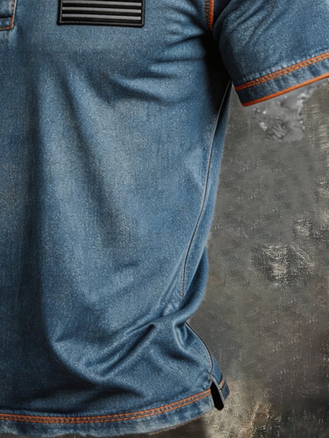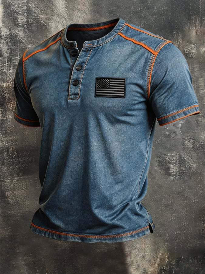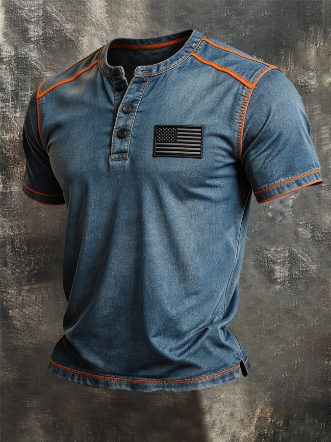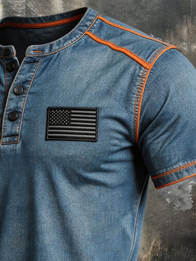 Men's Retro Color Stitching Pure Cotton Washed Faded Patriot T-Shirt
