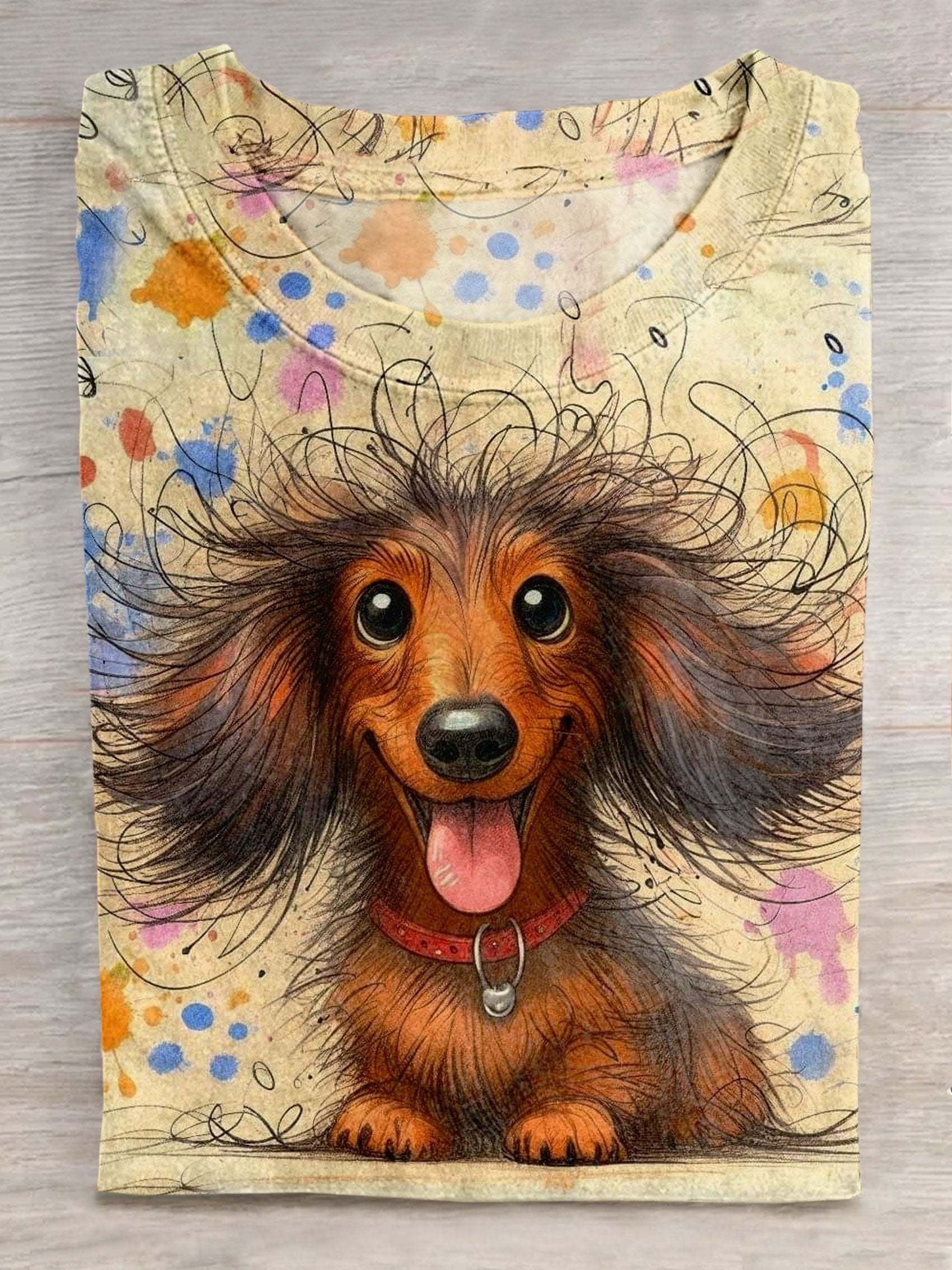 Funny Cute Dog Art Print Casual Short Sleeve T-shirt
