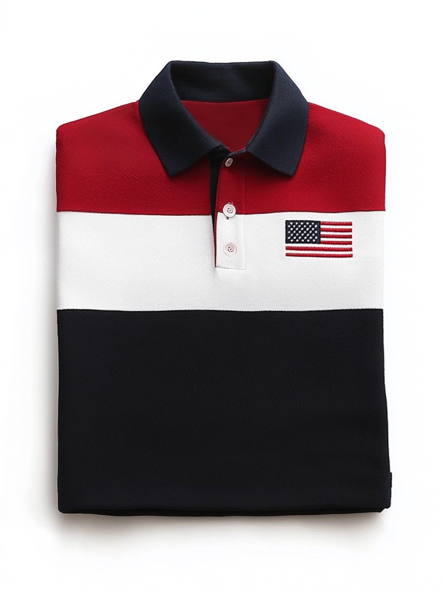 Men's Business Casual Striped Independence Day Button Short Sleeve Polo Shirt