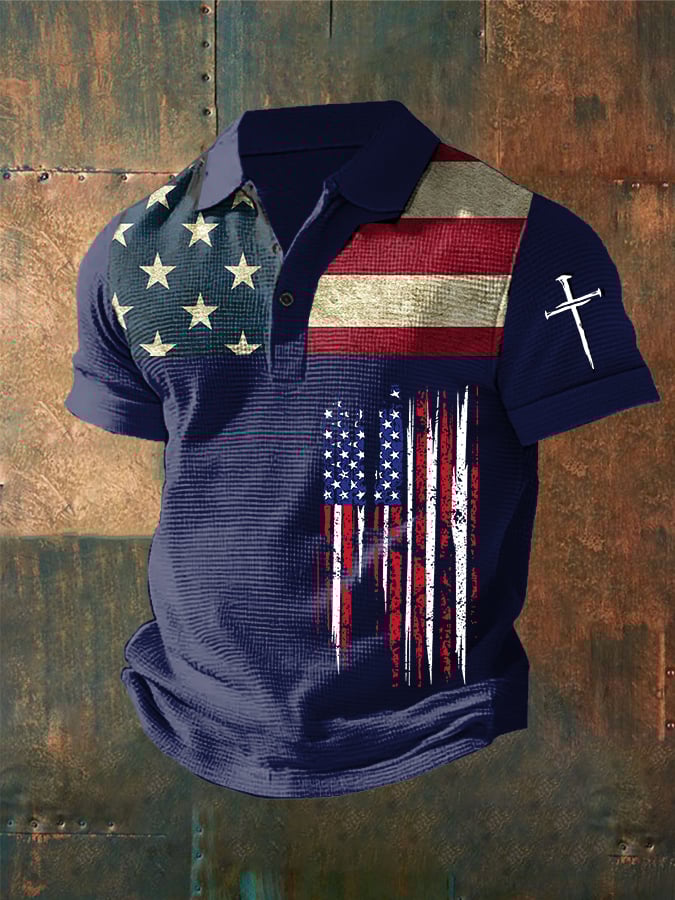 Men's Independence Day Waffle Fabric Short Sleeve Polo Shirt