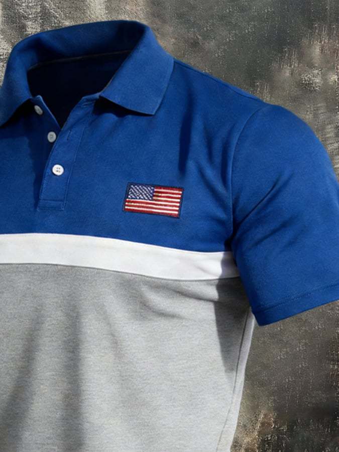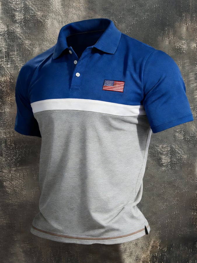 Men's Retro Patriot Color Block Polo Collar Short Sleeve