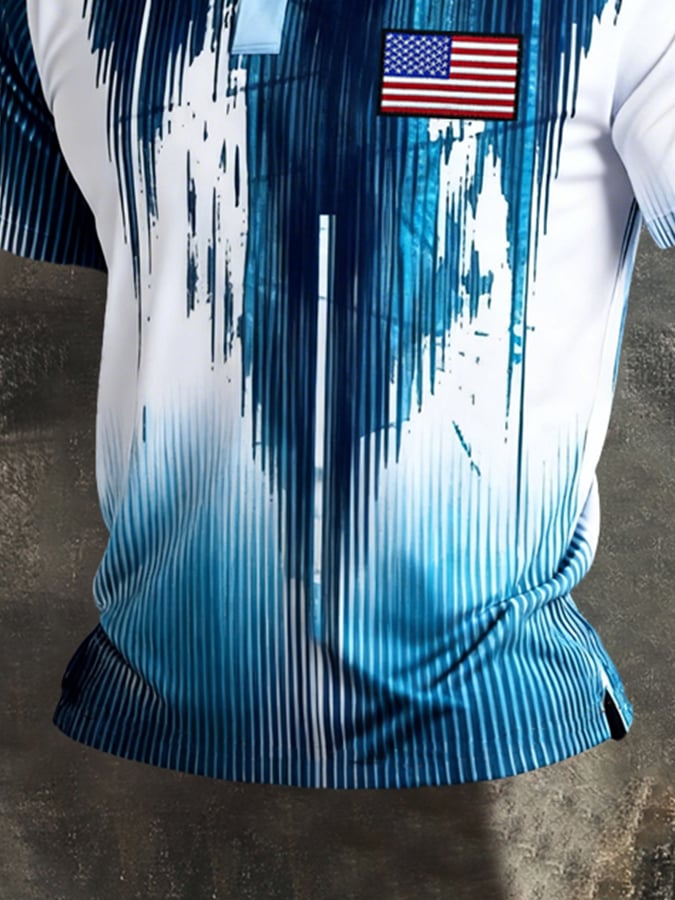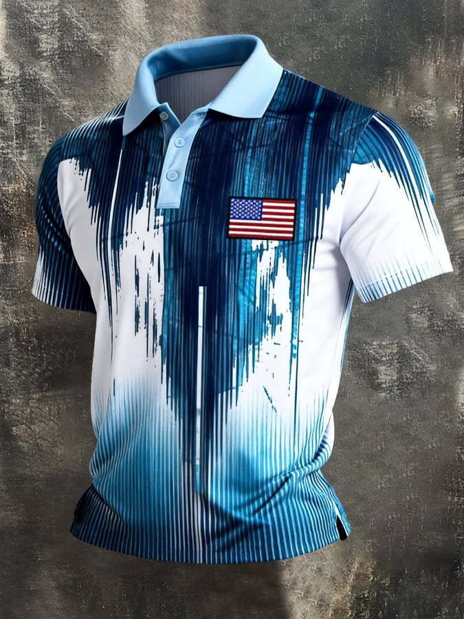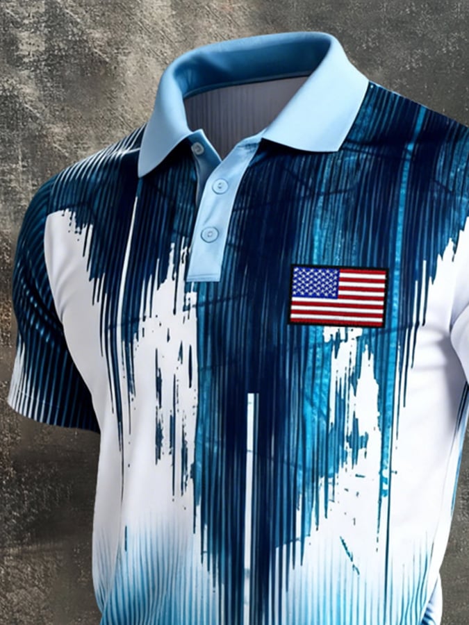 Men's Retro Patriot Color Block Polo Collar Short Sleeve