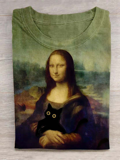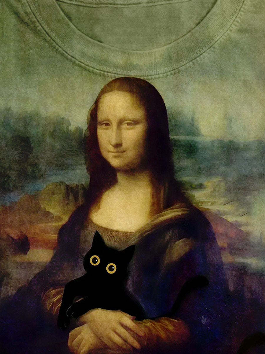 The Smiling Clack Cat Of The World Famous Painting Mona Lisa Creative Design T-shirt