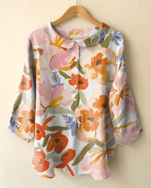 Vintage Long Sleeve Peter Pan Collar Floral Print Shirt