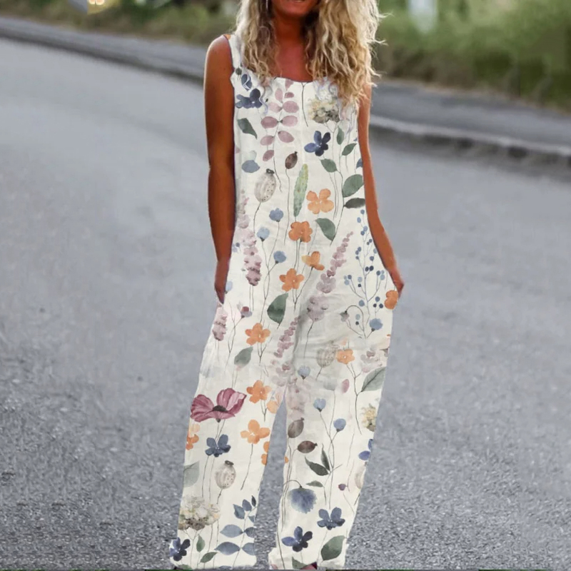 Women'S Classic Floral Print Loose Fit Jumpsuit