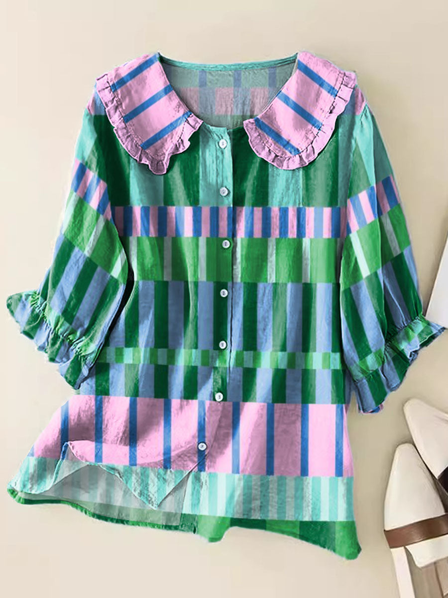 Women's Geometric Pattern Art Print Casual Peter Pan Collar Cotton Shirt – lolonb