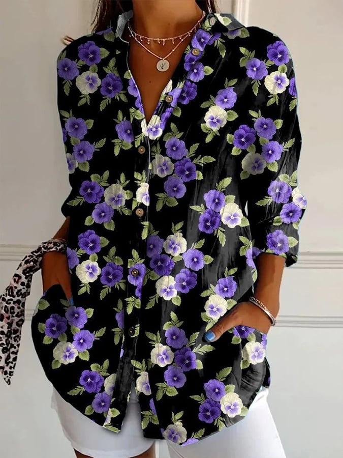 Buy 3 Get 10% OffWomen's Purple Floral Art Print Lapel Shirt – lolonb