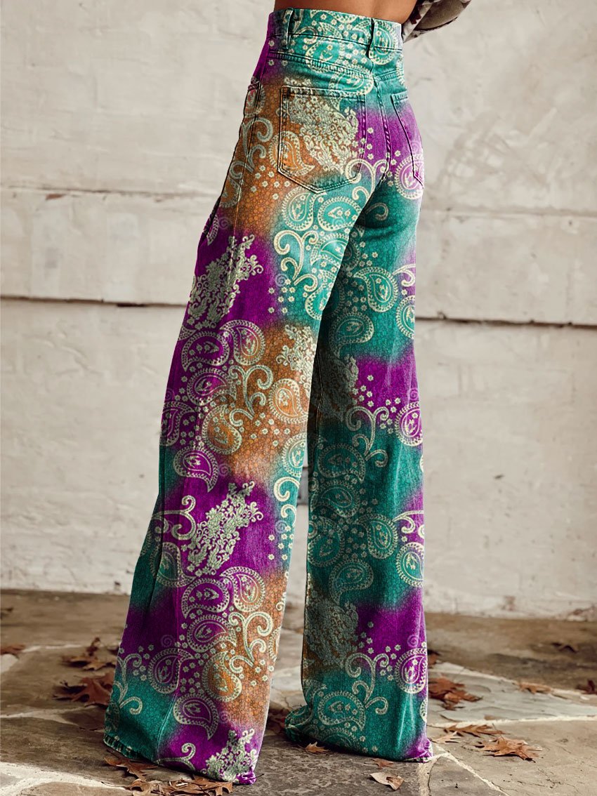 Women's Vintage Print Casual Wide Leg Pants