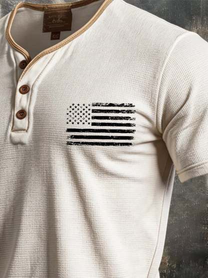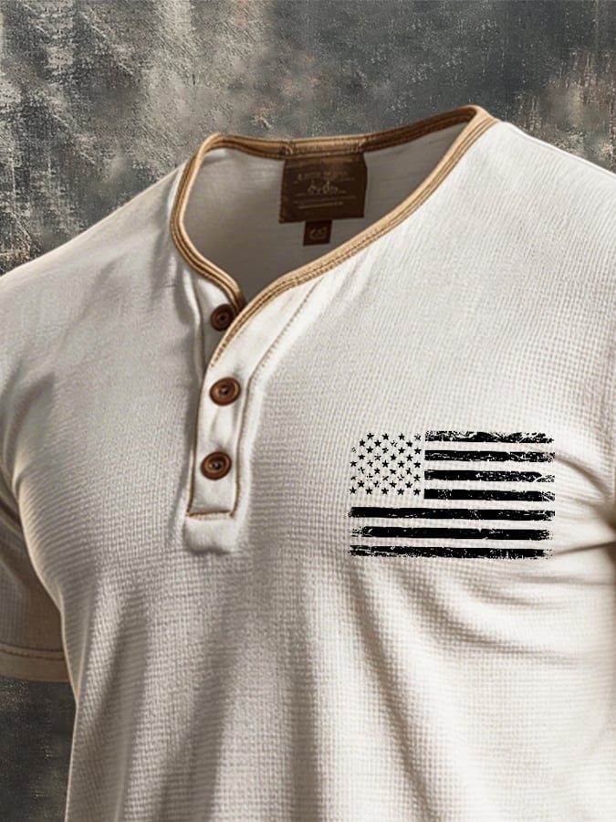 Men's Retro Color Block Waffle Patriot Henry T-Shirt – lolonb