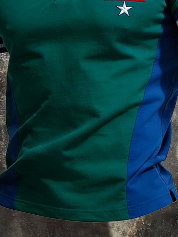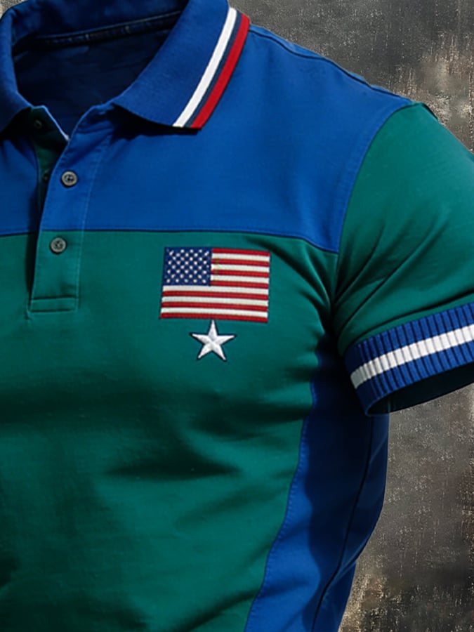 Men's Retro Patriot Color Block Polo Collar Short Sleeve