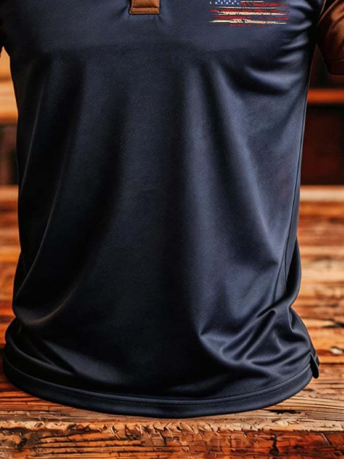Men's Retro Patriotic Color-Block Short-Sleeve Polo Shirt