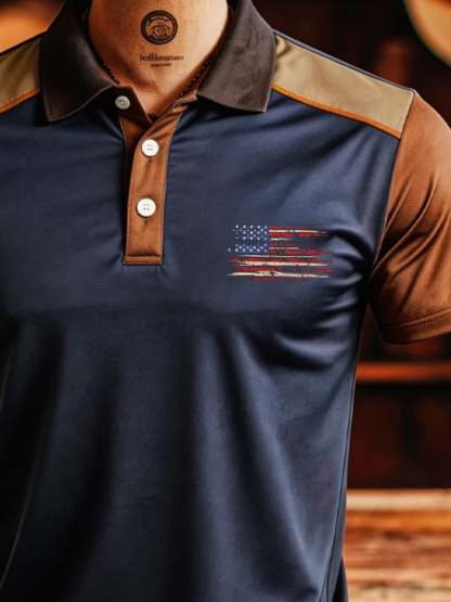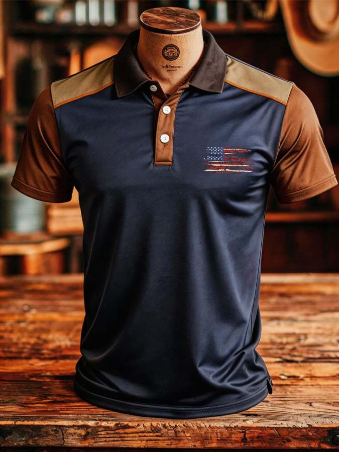 Men's Retro Patriotic Color-Block Short-Sleeve Polo Shirt – lolonb