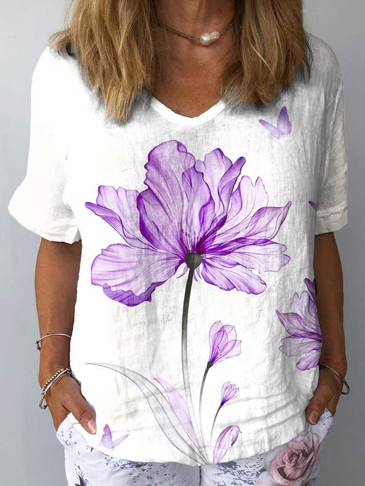 Women's Alzheimer's Purple Floral Print V-Neck Top – lolonb