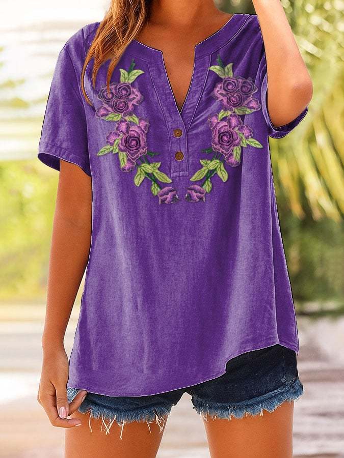 Buy 3 Get 10% OffWomen's Pansy Embroidered Print Shirt – lolonb