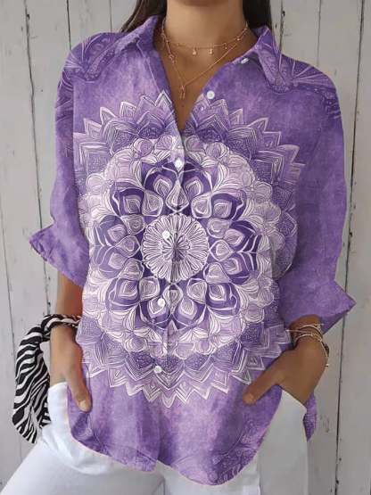 Buy 3 Get 10% OffWomen's Purple Mandala Printed Slouch Lapel Shirt – lolonb