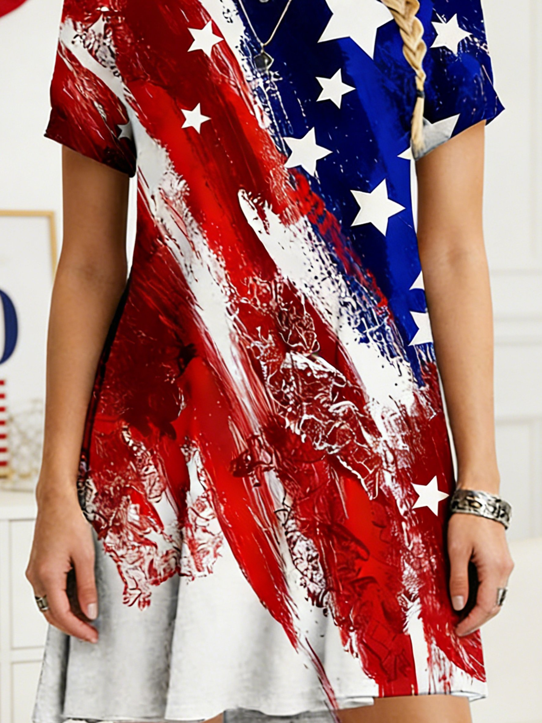 Women's 250th Anniversary Of The Founding Of the United States Independence Day Vintage Short Sleeve Crew Neck A-Line 3D Printing Daily Going Out Casual Mini Dress