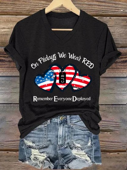 Women's On Fridays We Wear RED Print V Neck T-shirt