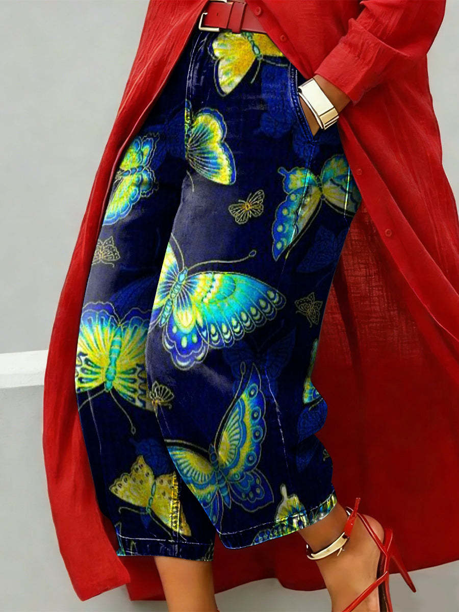 Dark Night Butterfly Decorative Pattern Women's Tannin Pants