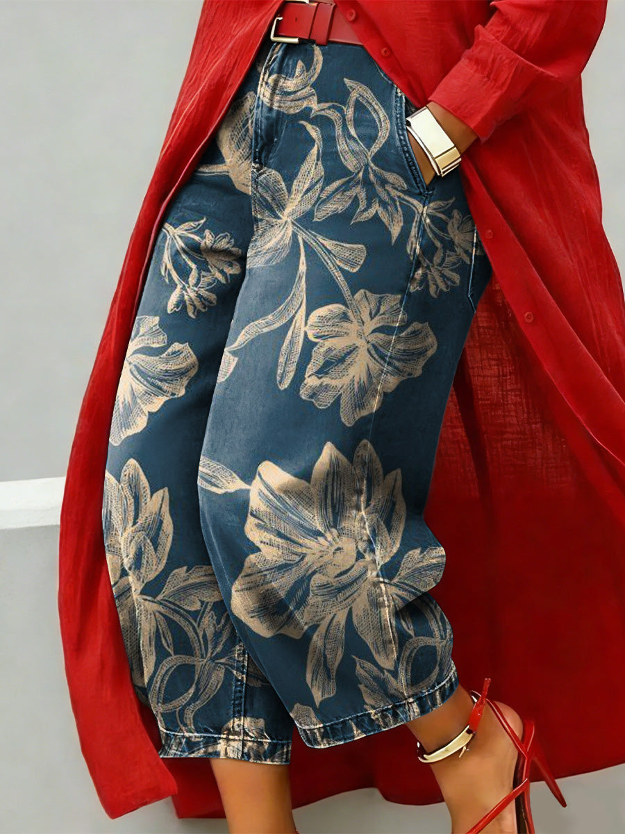 Elegant Floral Decorative Patterns Women's Denim Pants