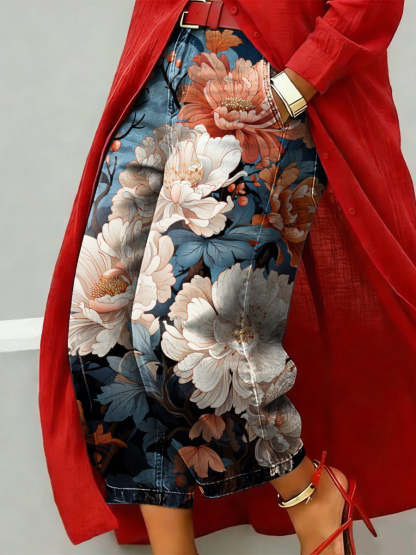 Elegant Oil Painting-style Floral Decorative Pattern Women's Denim Pants – lolonb