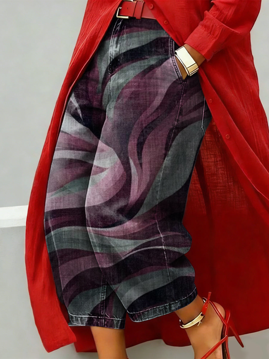 Gradient Ripple Decorative Pattern Women's Denim Pants