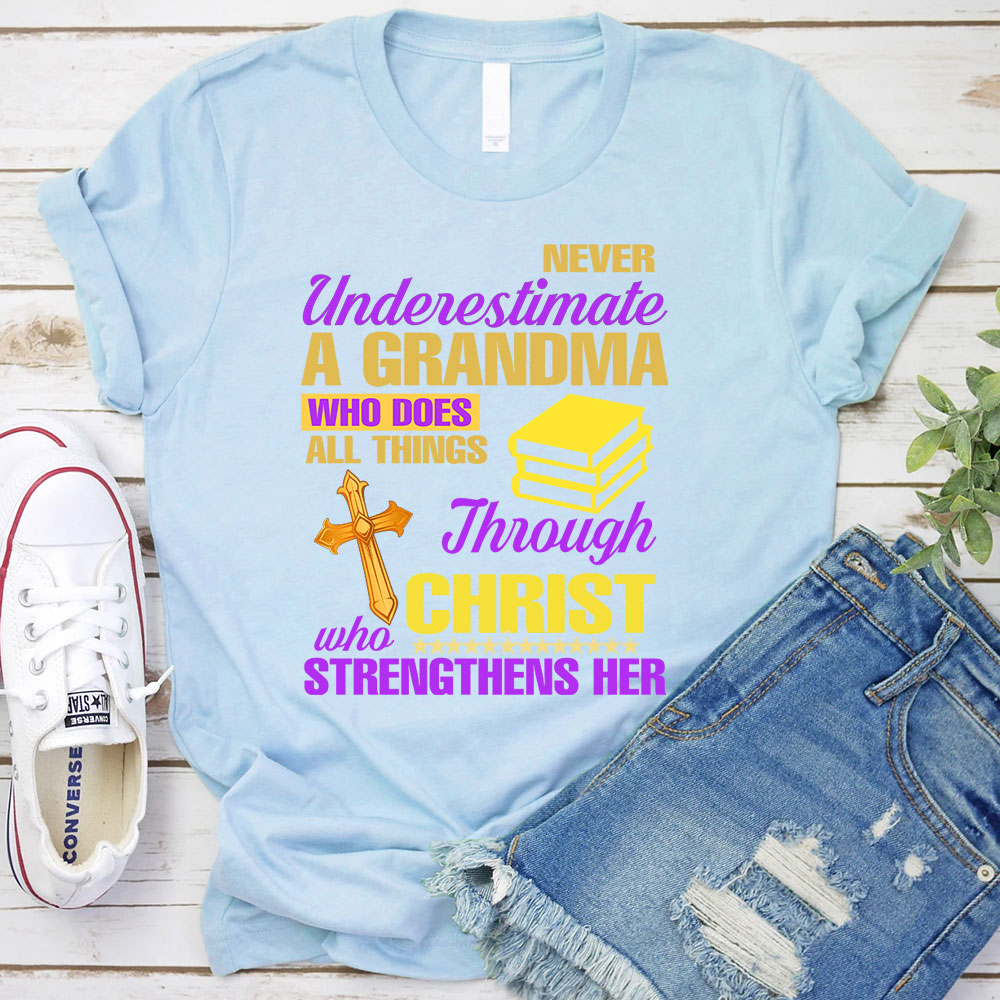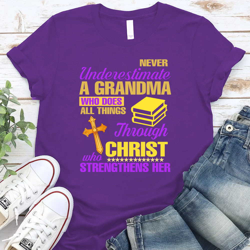 Never Underestimate a Grandma Who Does All Thing Through Christ Shirt