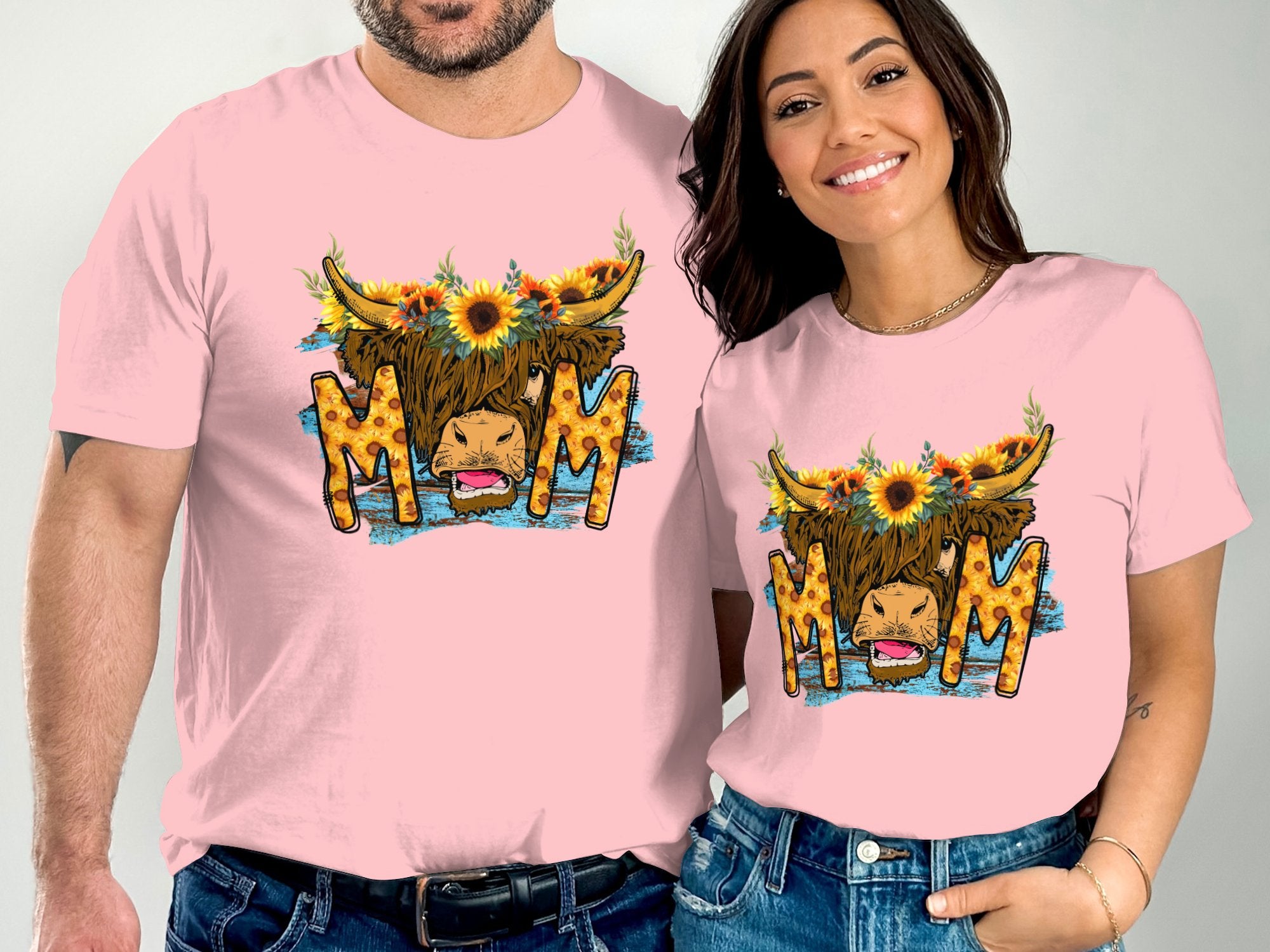 Unique Sunflower Highland Cow Mom Graphic T-Shirts