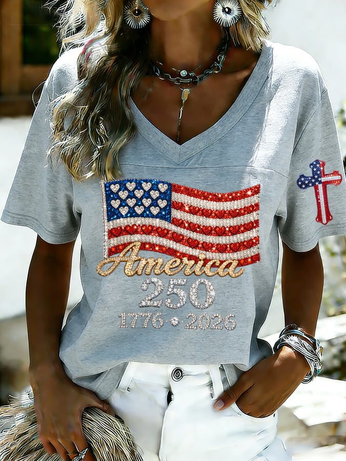 Women's 250th Anniversary Print V-Neck Top