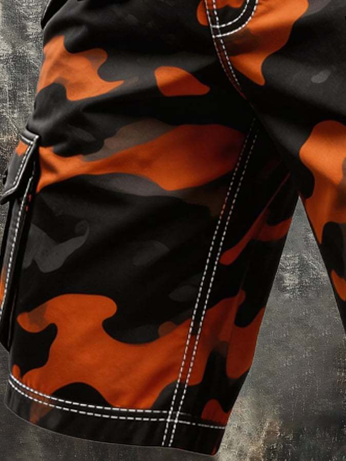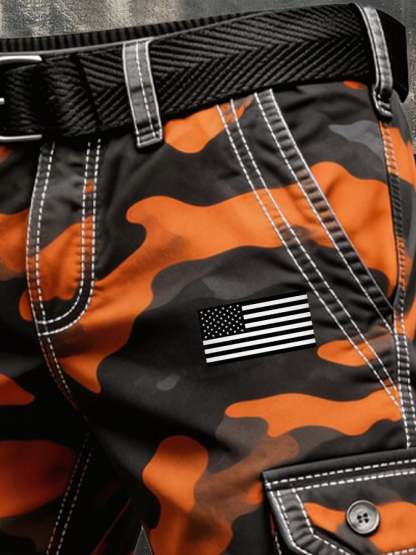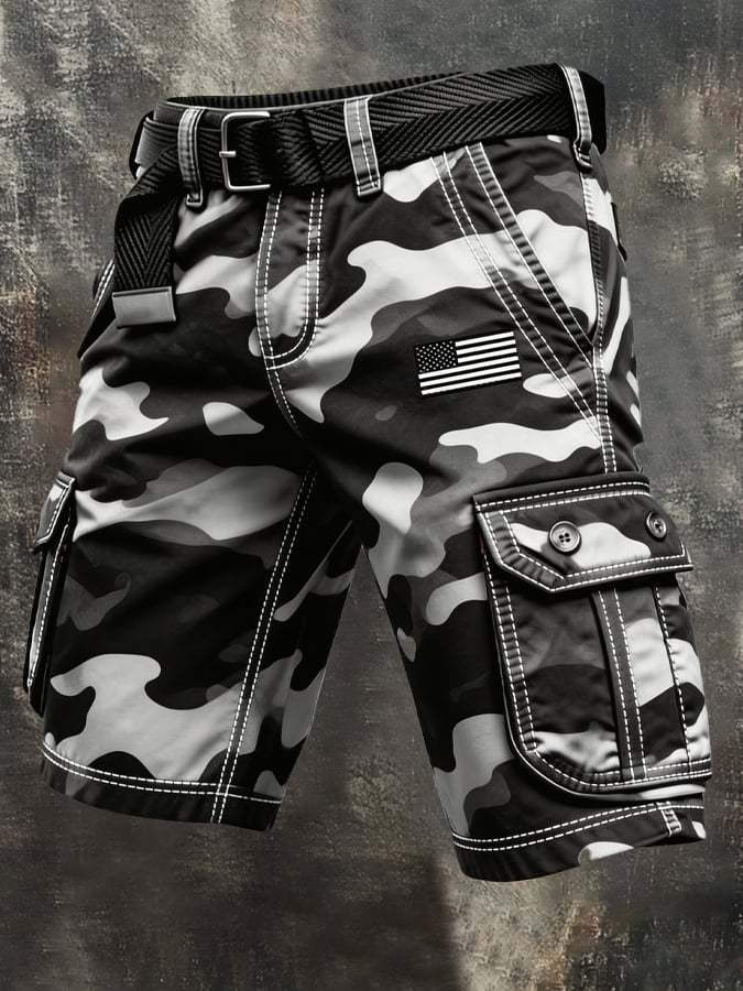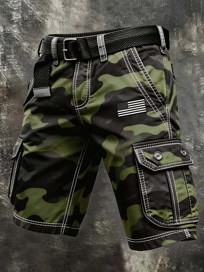 Men's Retro Camo Distressed Pocket Cargo Shorts (Belt Not Included)