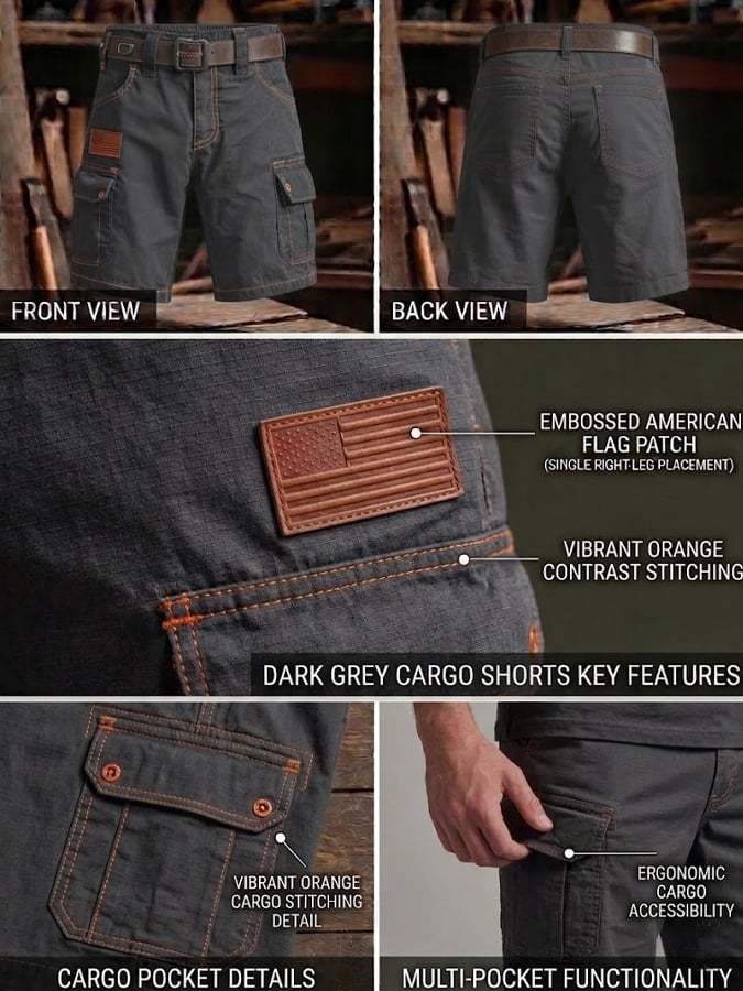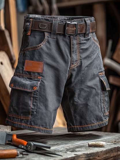 Men's Retro Outdoor Washed & Distressed Multi-Pocket Functional Cargo Shorts