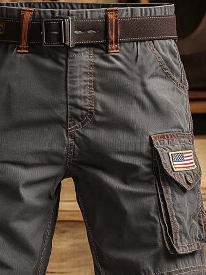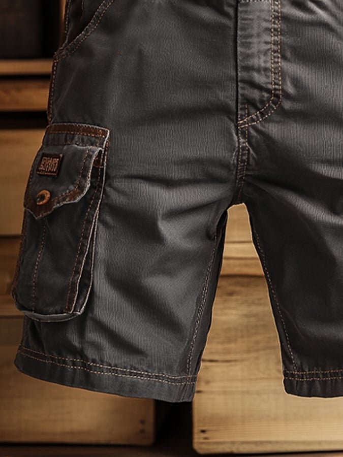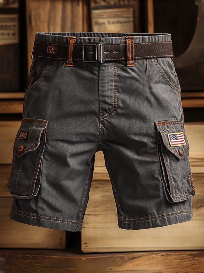 Men's Retro Outdoor Washed & Distressed Multi-Pocket Functional Cargo Shorts