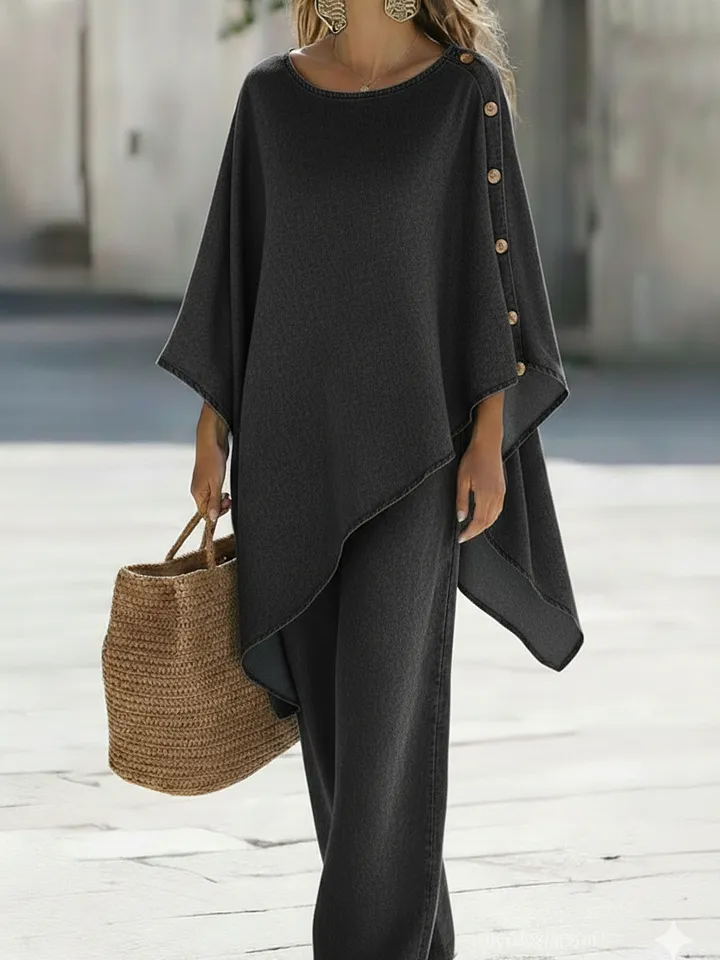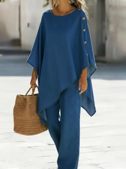 Casual Denim Button-down Top And Wide-leg Pants Two-piece Set – lolonb