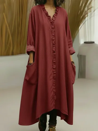 Casual Lace-trimmed V-neck Denim Dress – lolonb