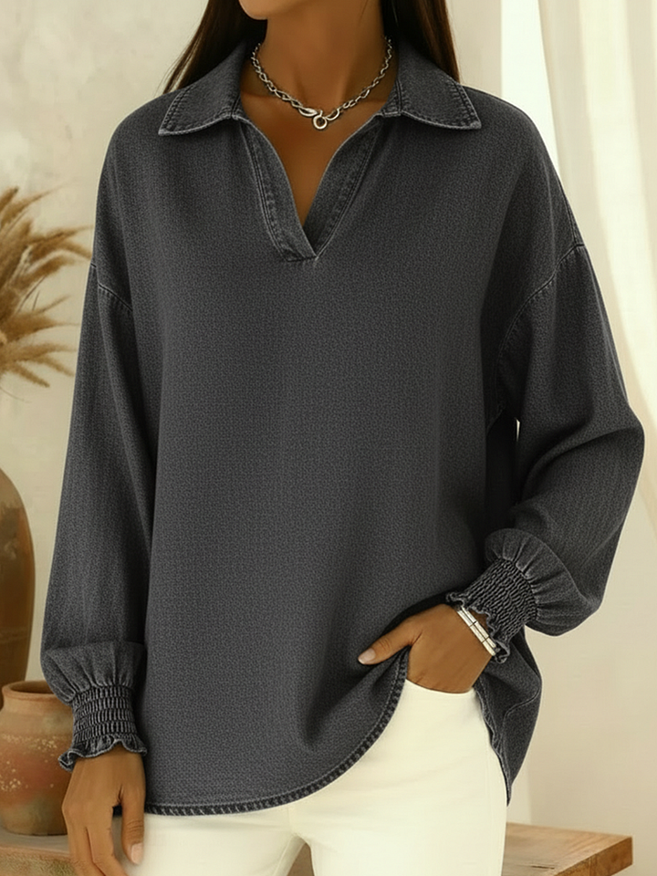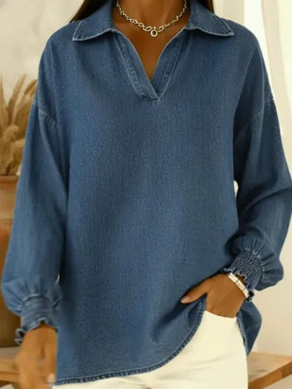 Casual Polo-neck Denim Pullover Shirt – lolonb