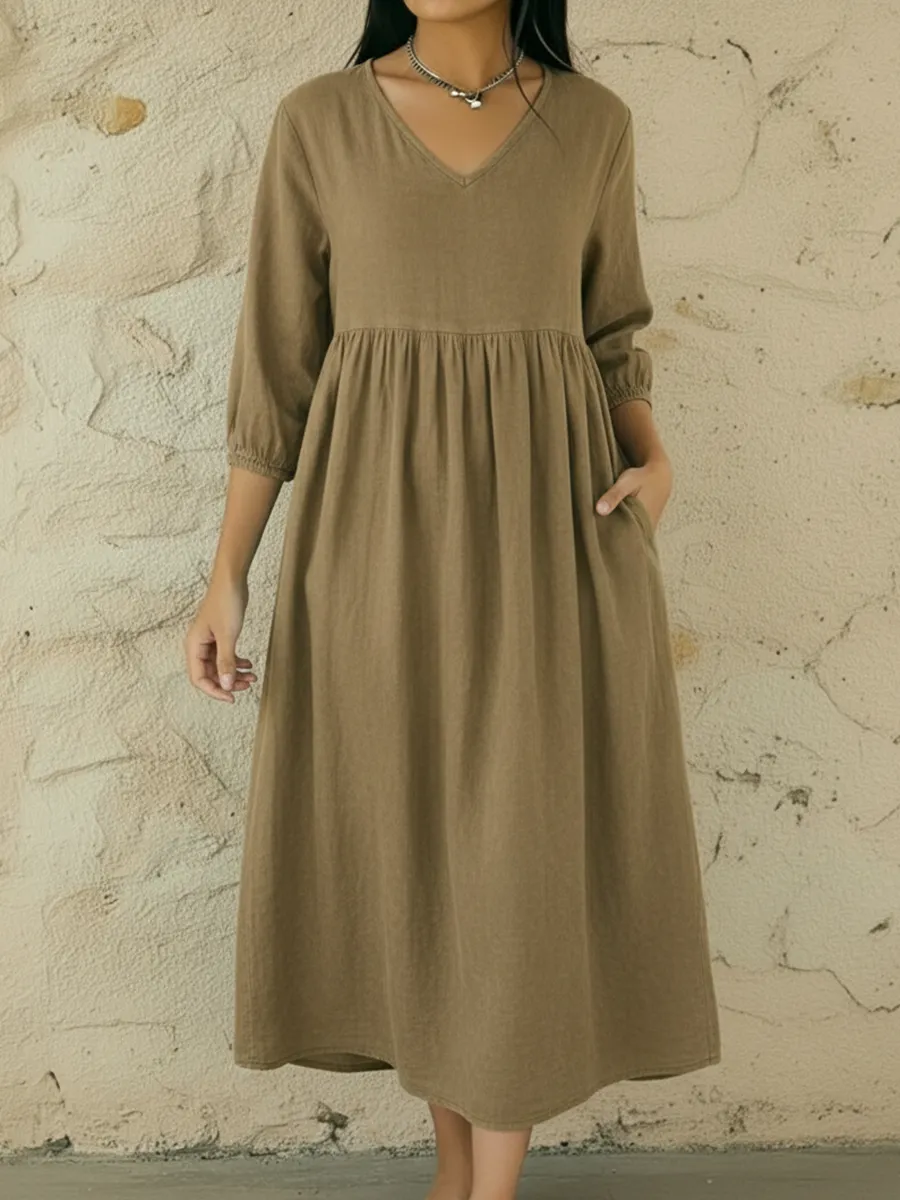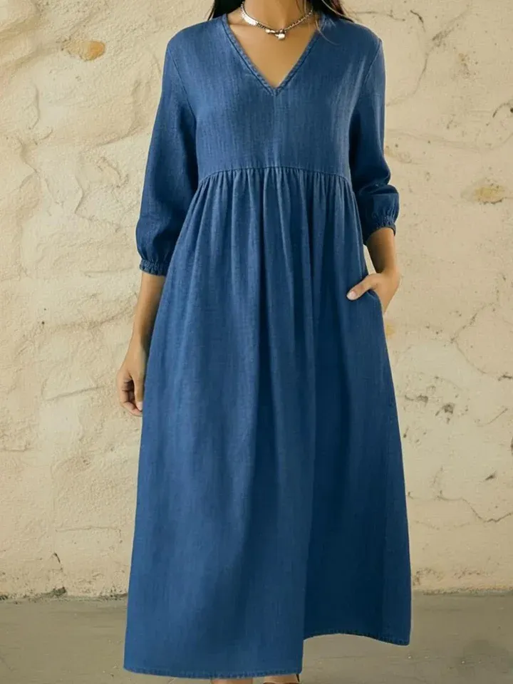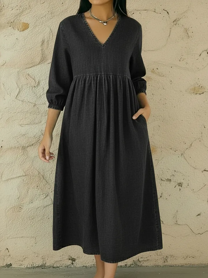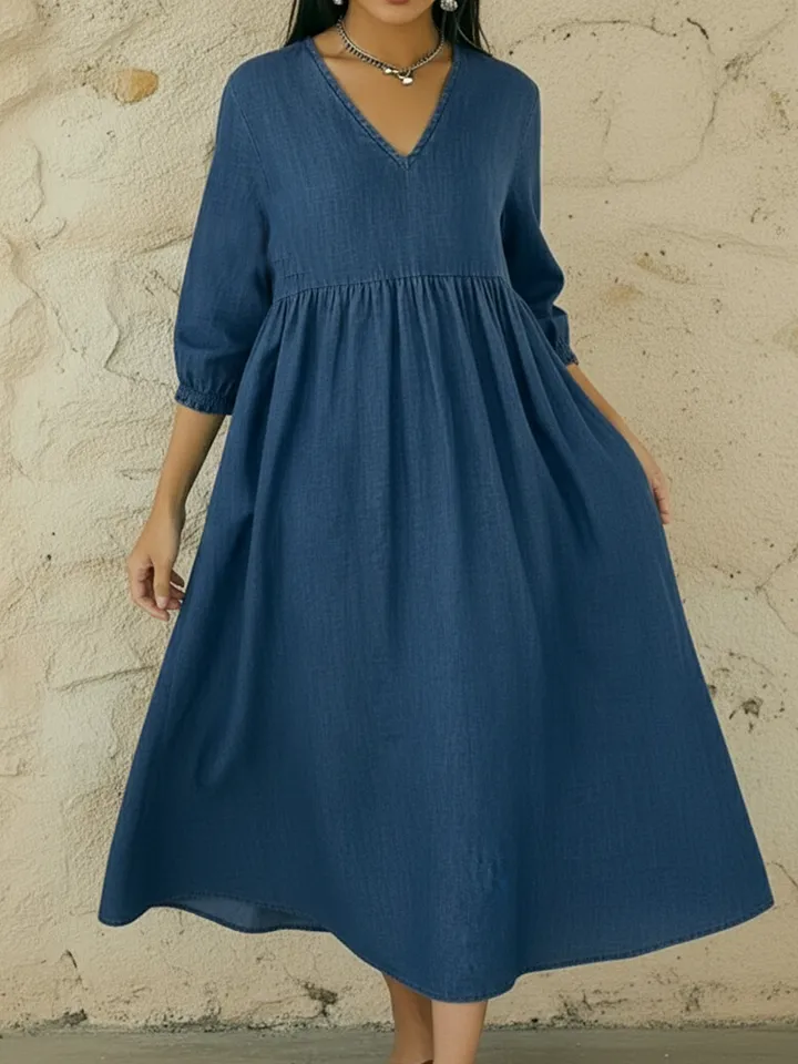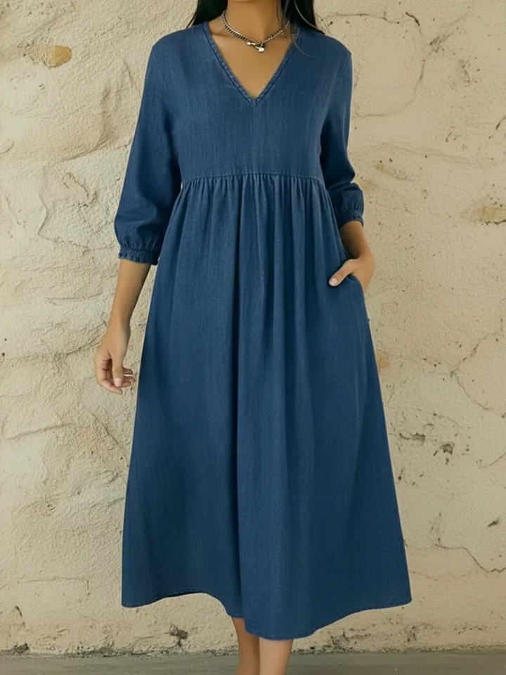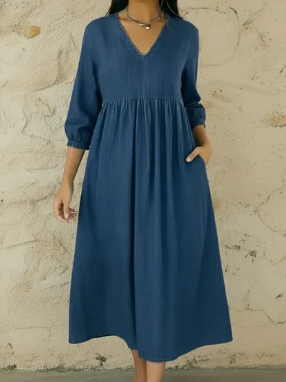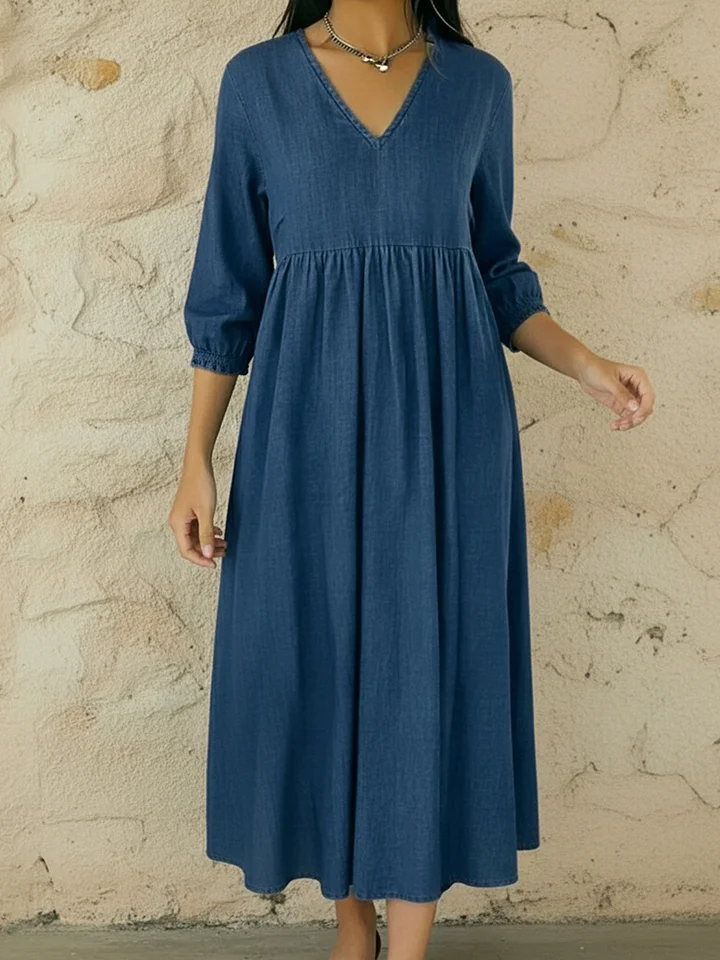 Casual V-neck Denim A-line Dress – lolonb