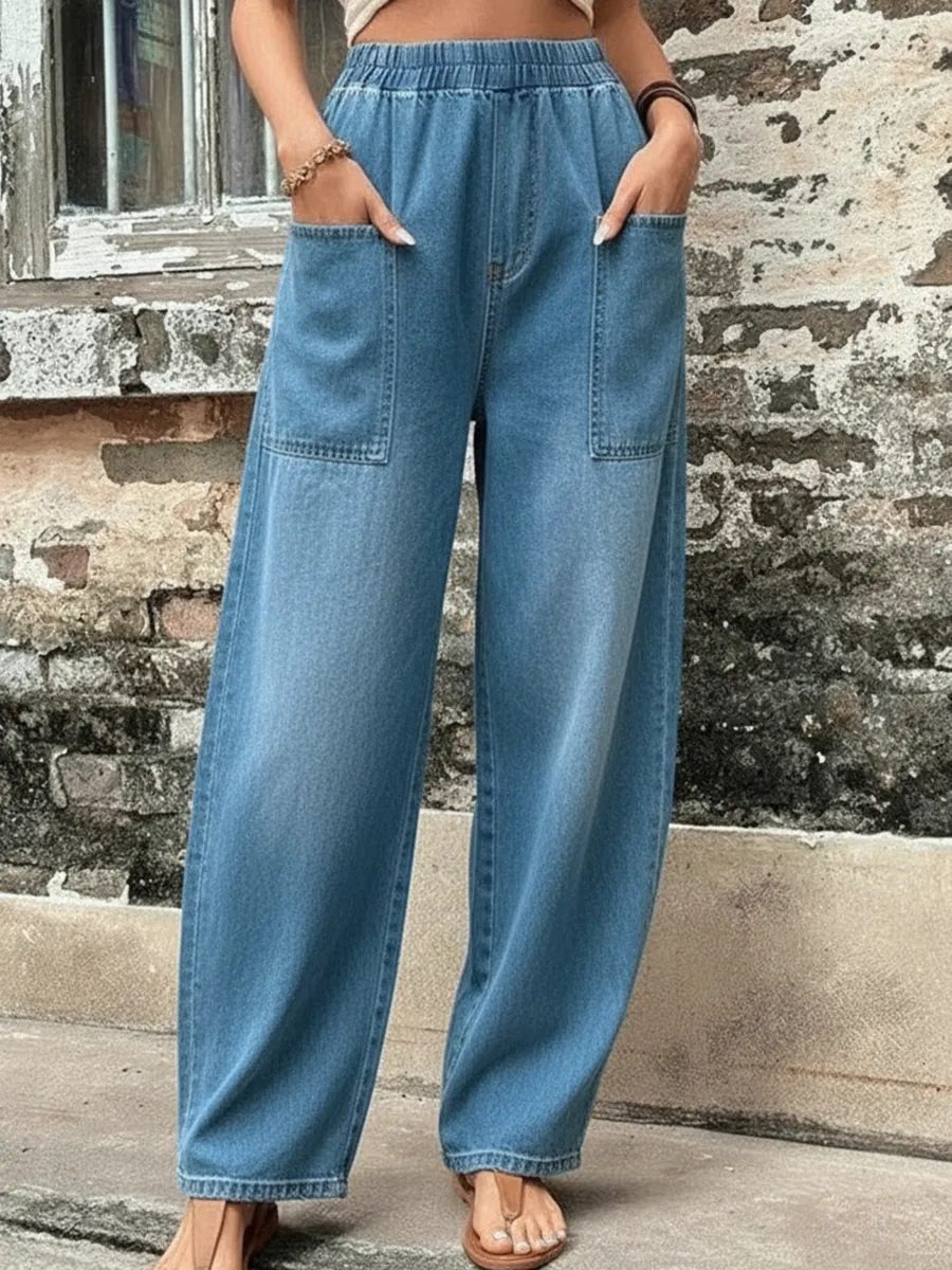 Cozy Pocket Denim Wide-leg Pants – lolonb