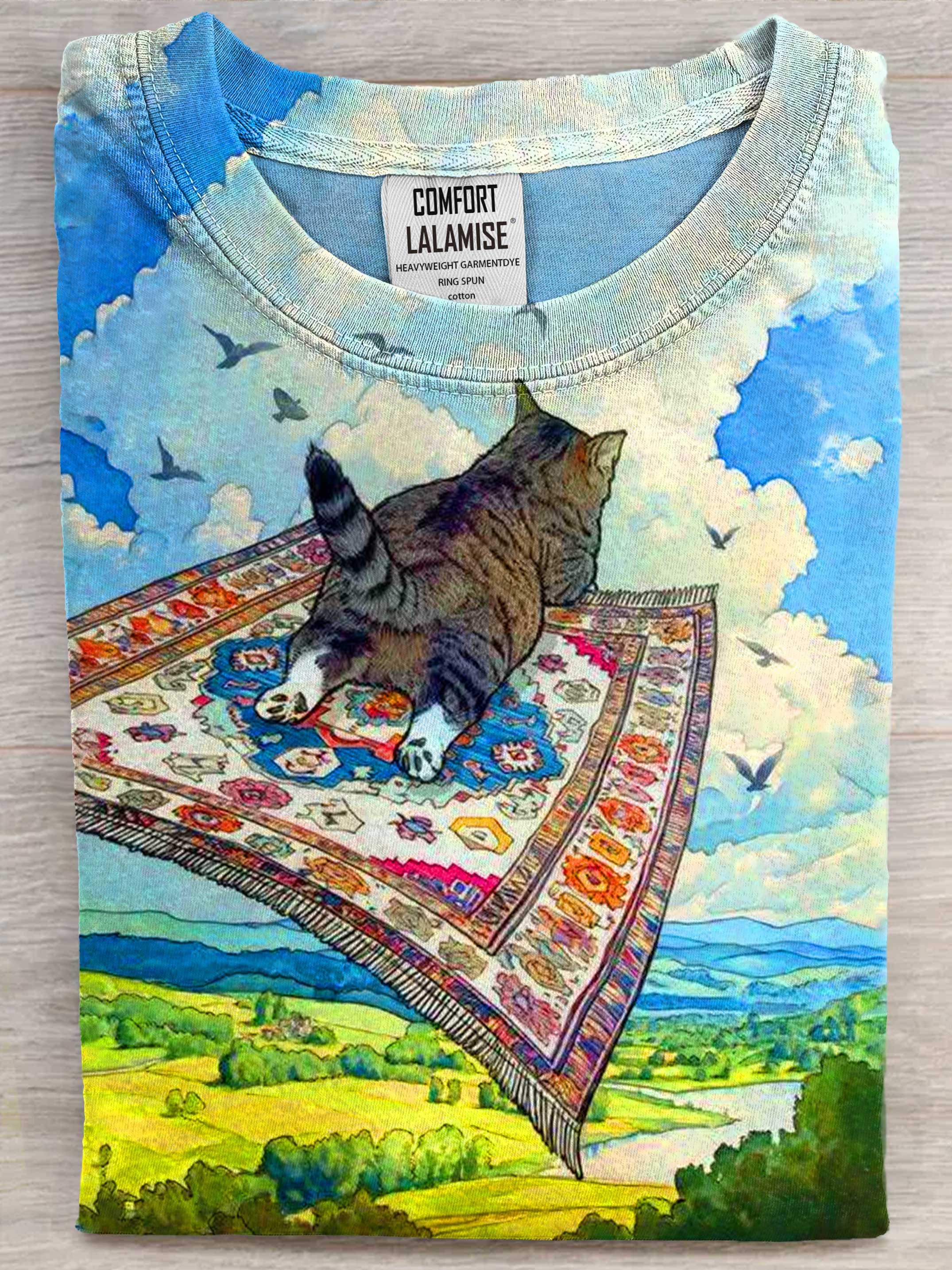 Funny Cat Art Print Casual Short Sleeve T-shirt