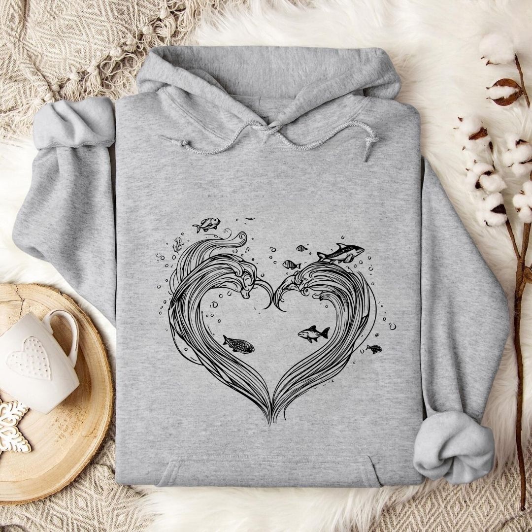 🌊 Unisex Heavy Blend Heart Waves Hoodie: Cozy, Sustainable, Ocean-Inspired 🌿